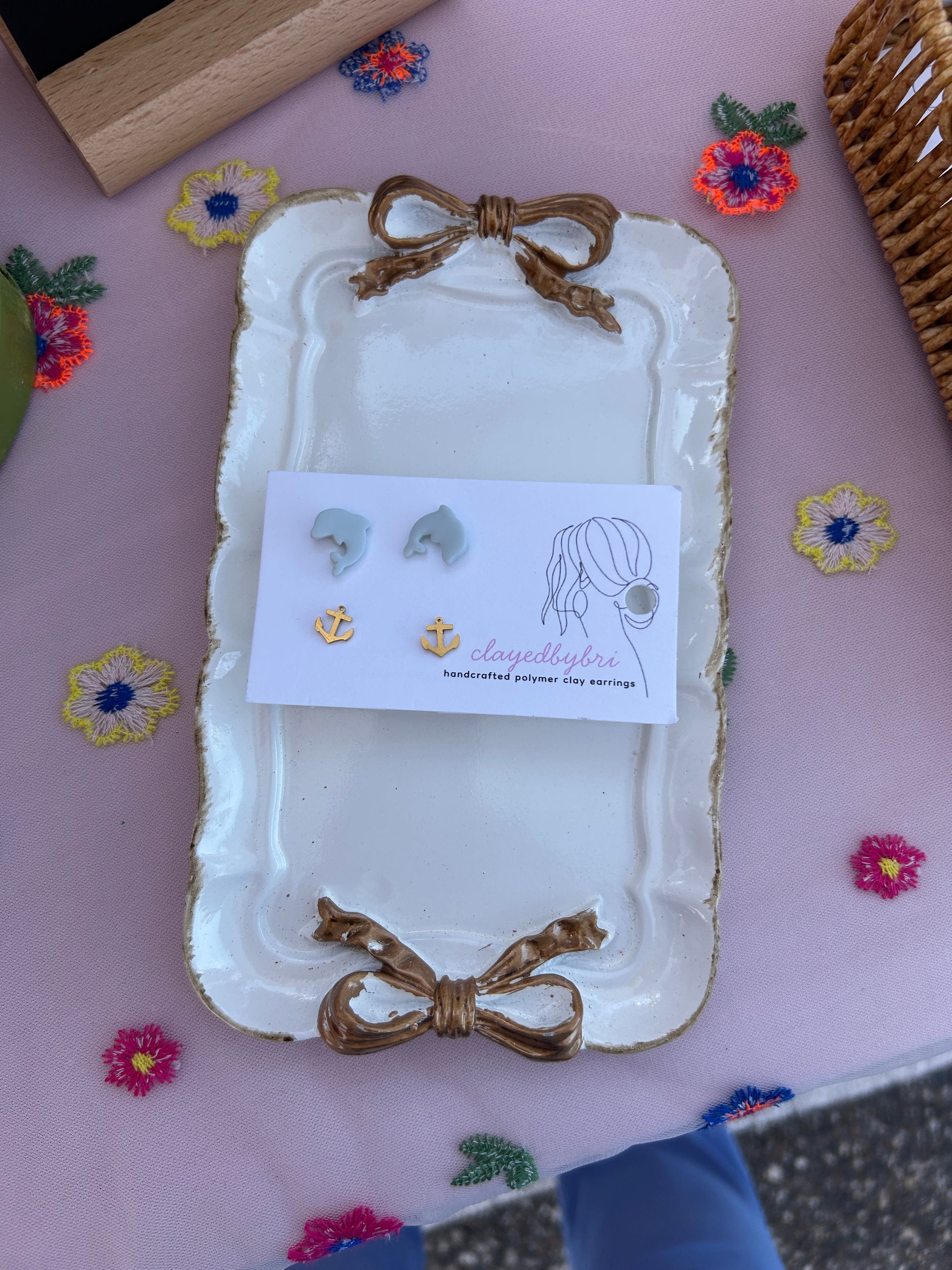 Stud Pack ! Light Blue Dolphins and Gold Anchors