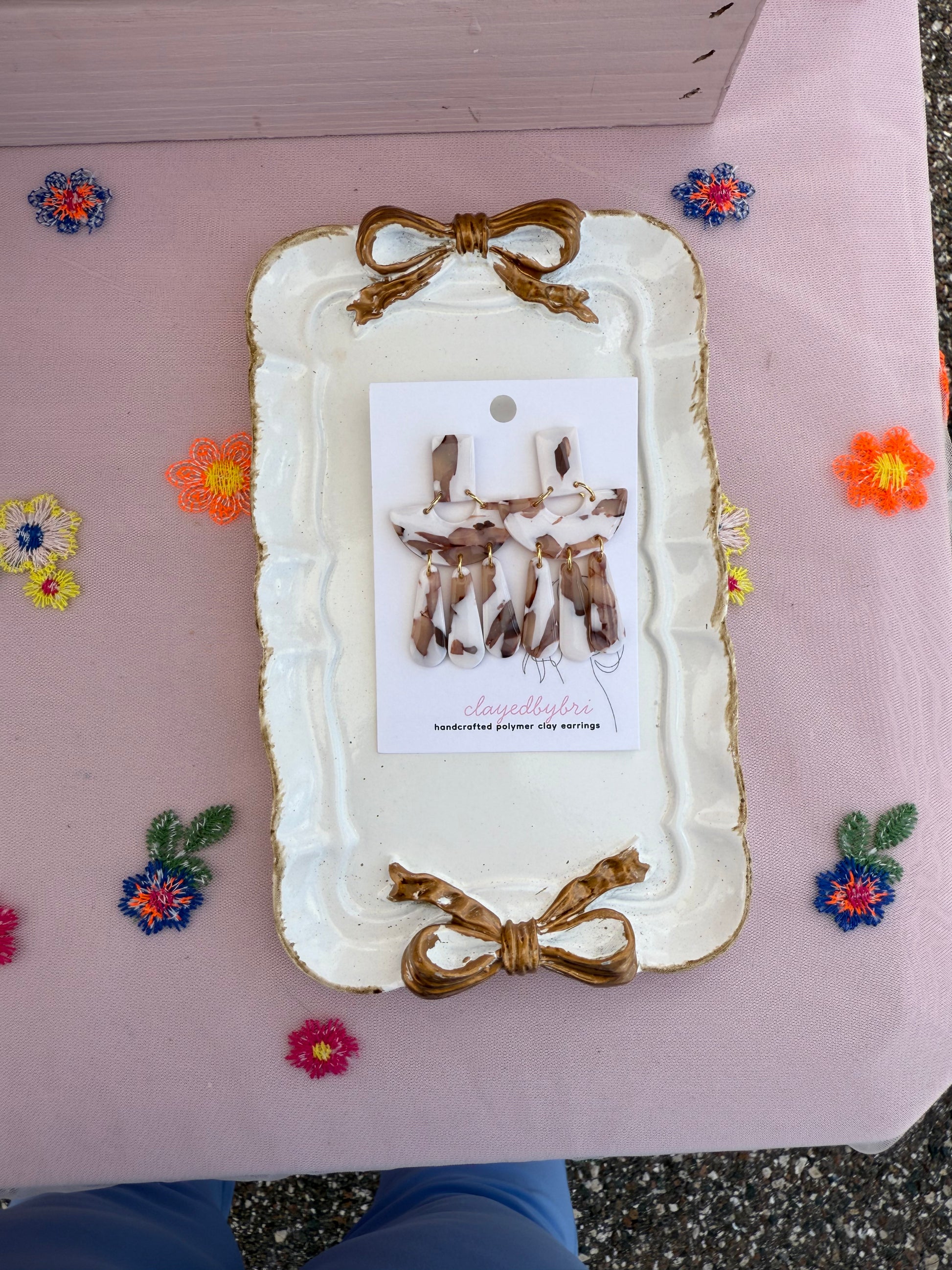 White & Brown Marbled Dangles
